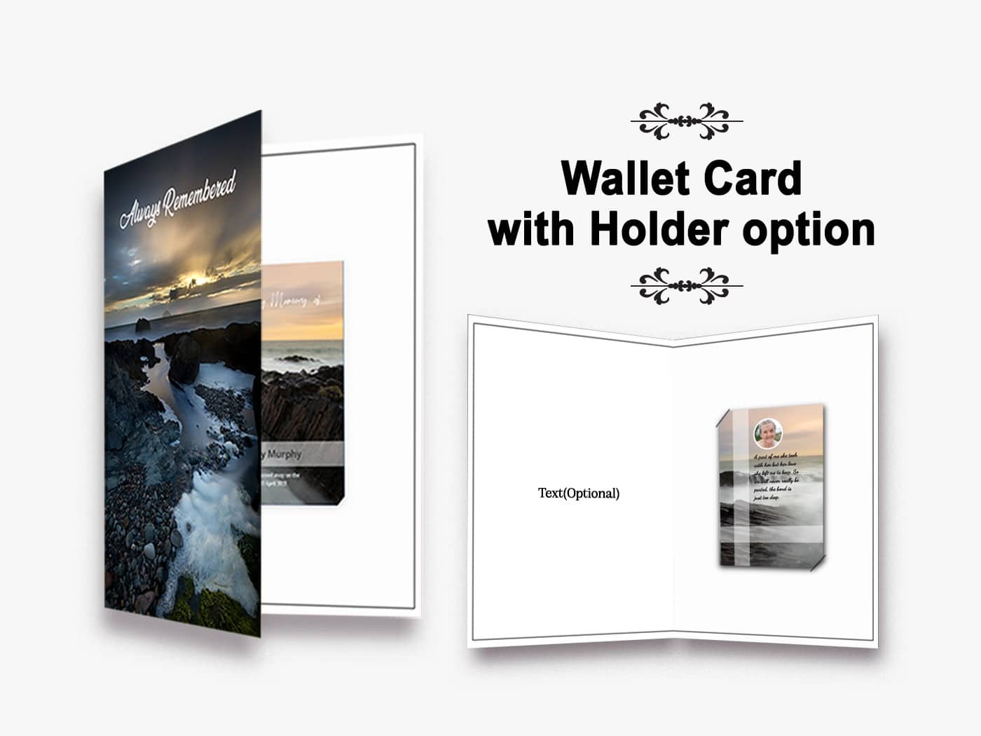 • Our memorial wallet cards are finished to size 55mm x 85mm Tall.